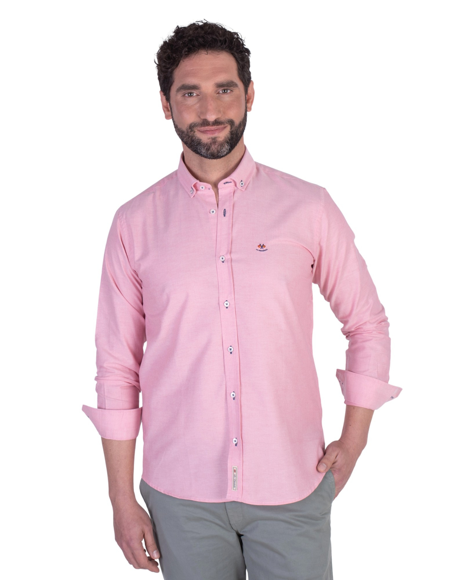 Serie 55505 Camisa oxford lisa cuello botón color rosa