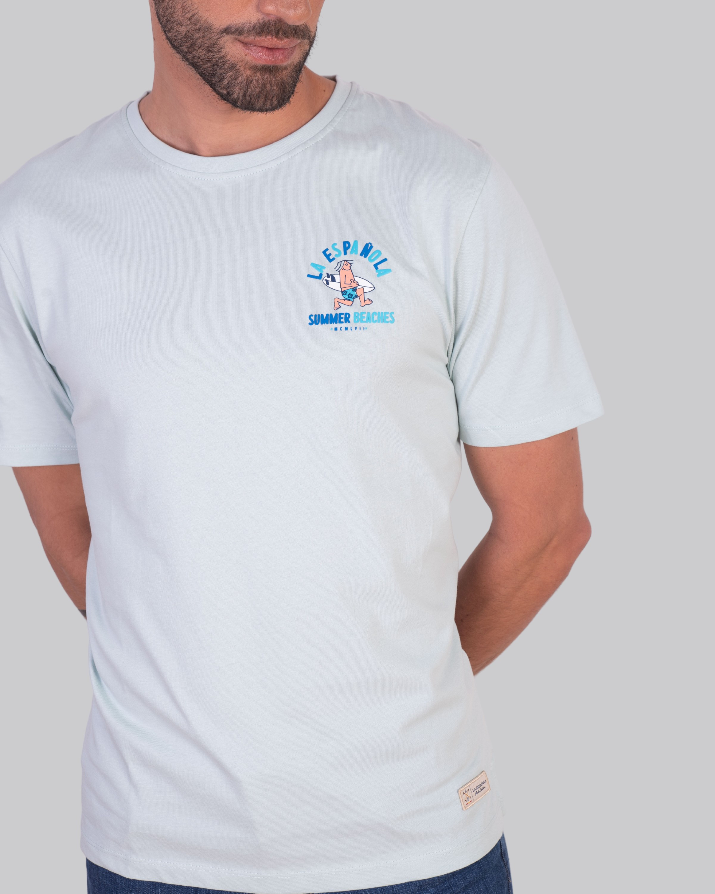 Camiseta manga corta y estampado en el pecho y espalda para hombre. Confeccionada en algodón 100%.