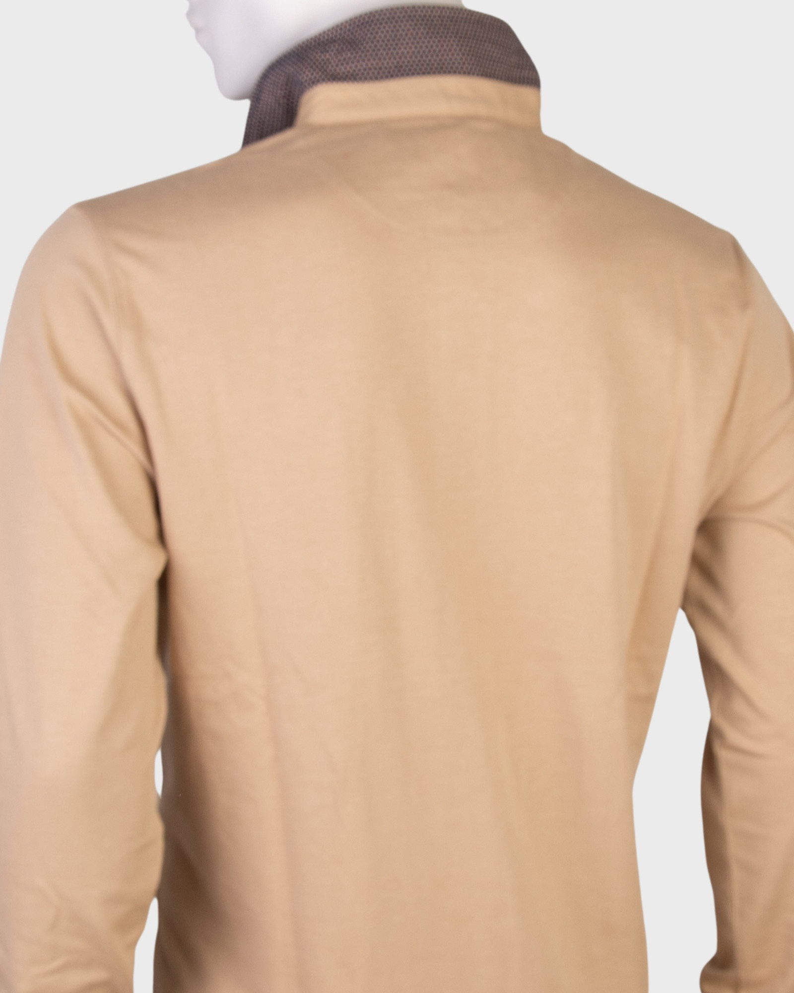Serie 10906 Polo algódón básico cuello combinado color beige