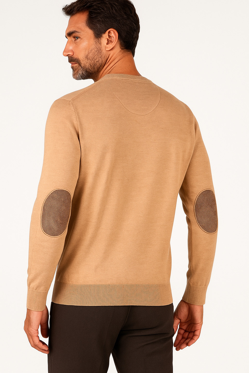 Suéter Básico Cuello Caja Con Coderas Color Camel. Serie 10919