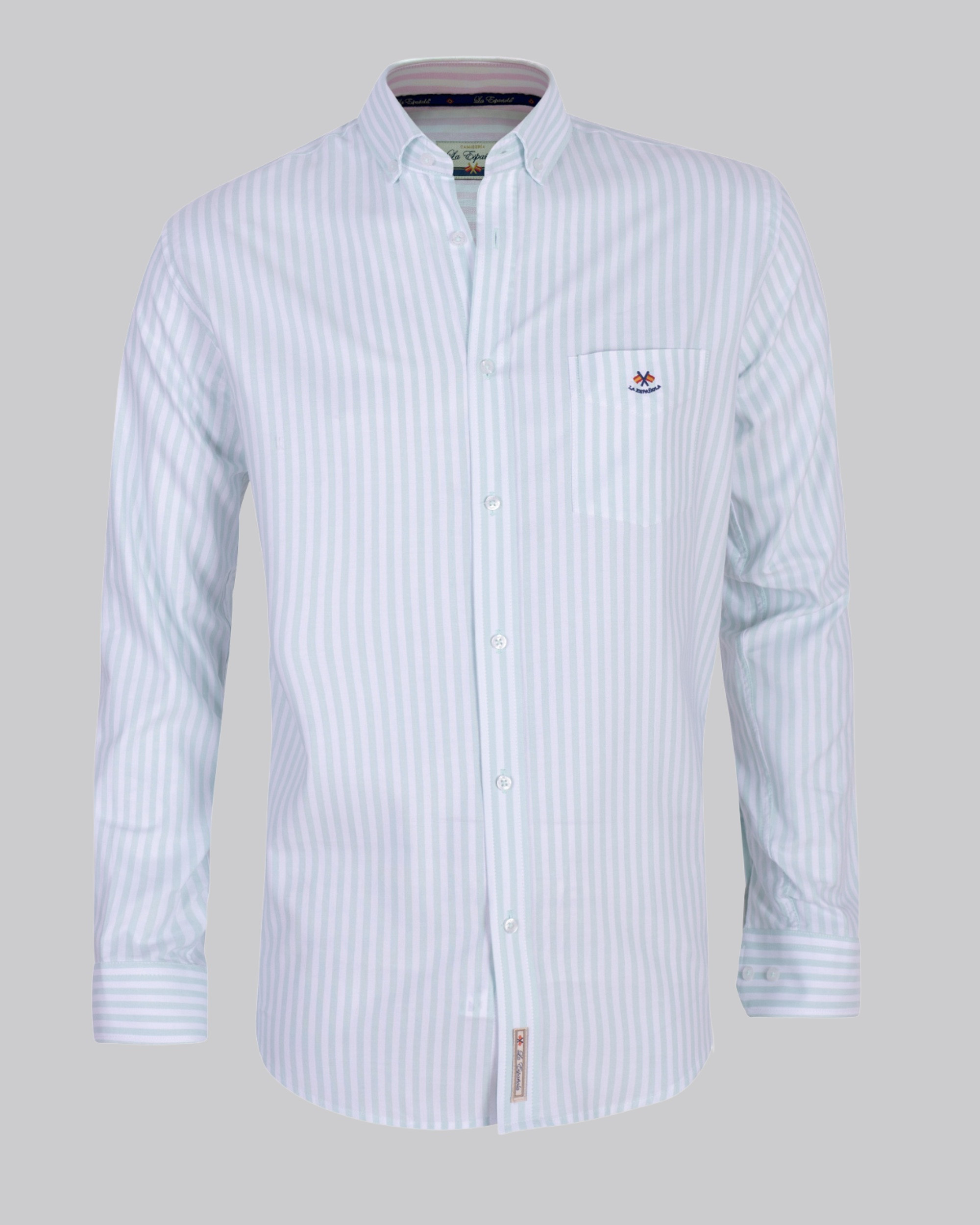 Camisa regular rayas con bolsillo y logo bordado. Confeccionada en tejido oxford 100% algodón.