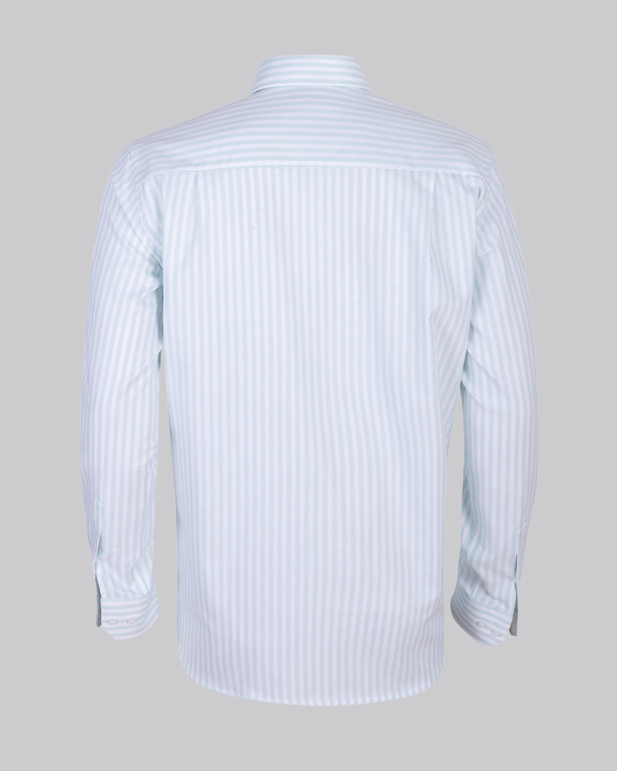 Camisa regular algodón rayas color verde con bolsillo y cuello botón para hombre. Confeccionada en algodón 100%.