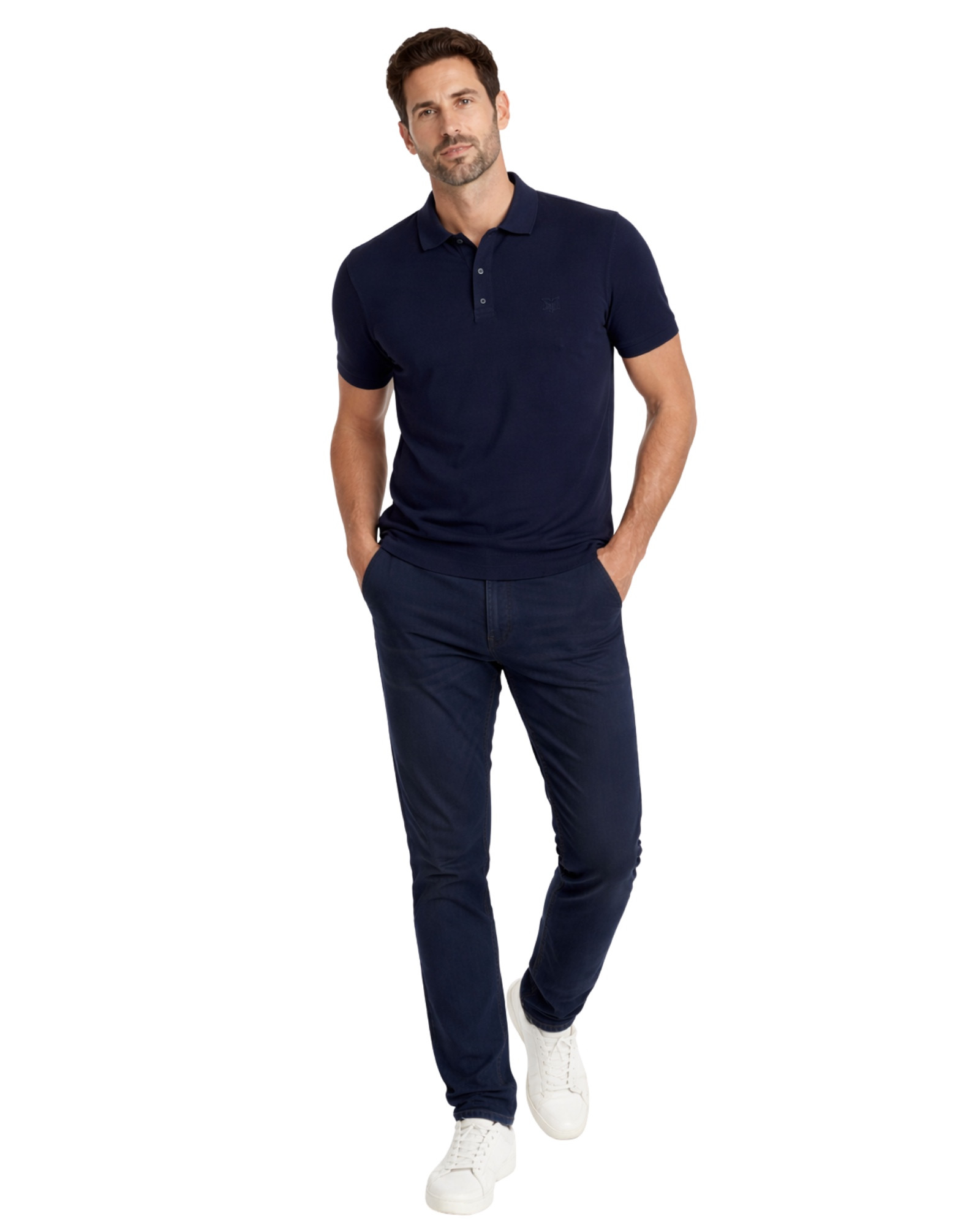 Suéter cuello polo botones liso tricotosa color azul marino algodón eco-friendly