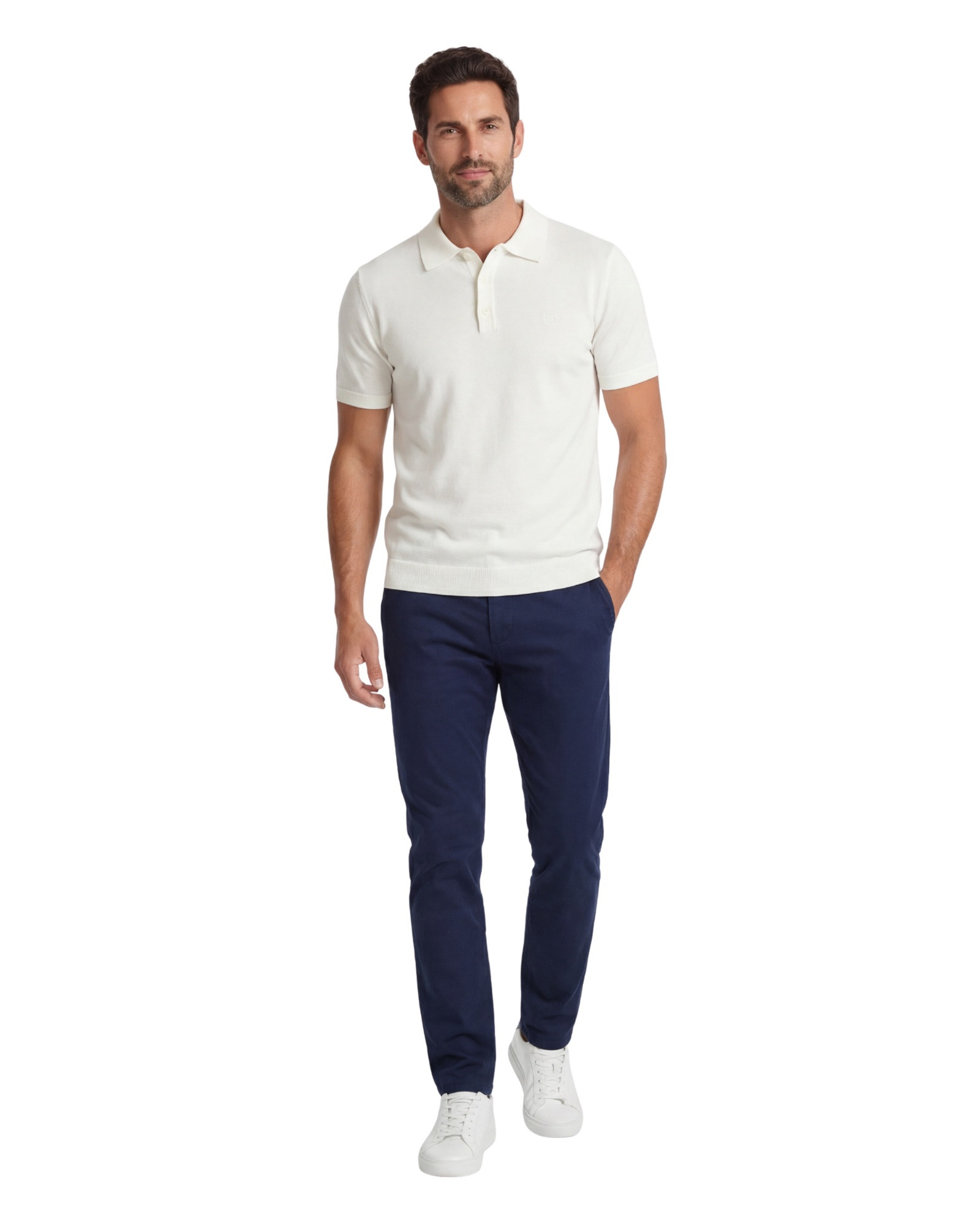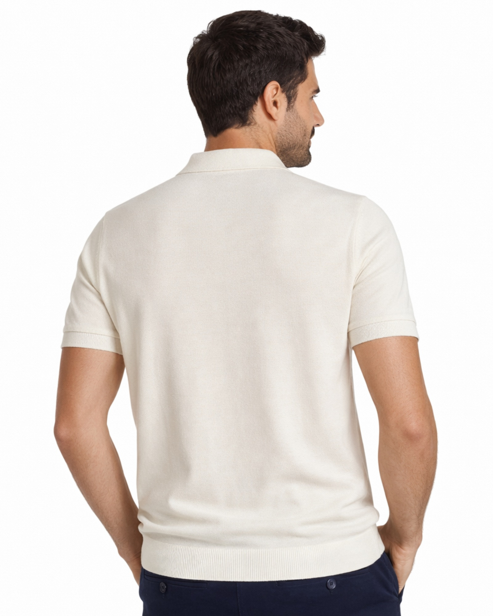 Suéter cuello polo botones liso tricotosa color crudo algodón eco-friendly