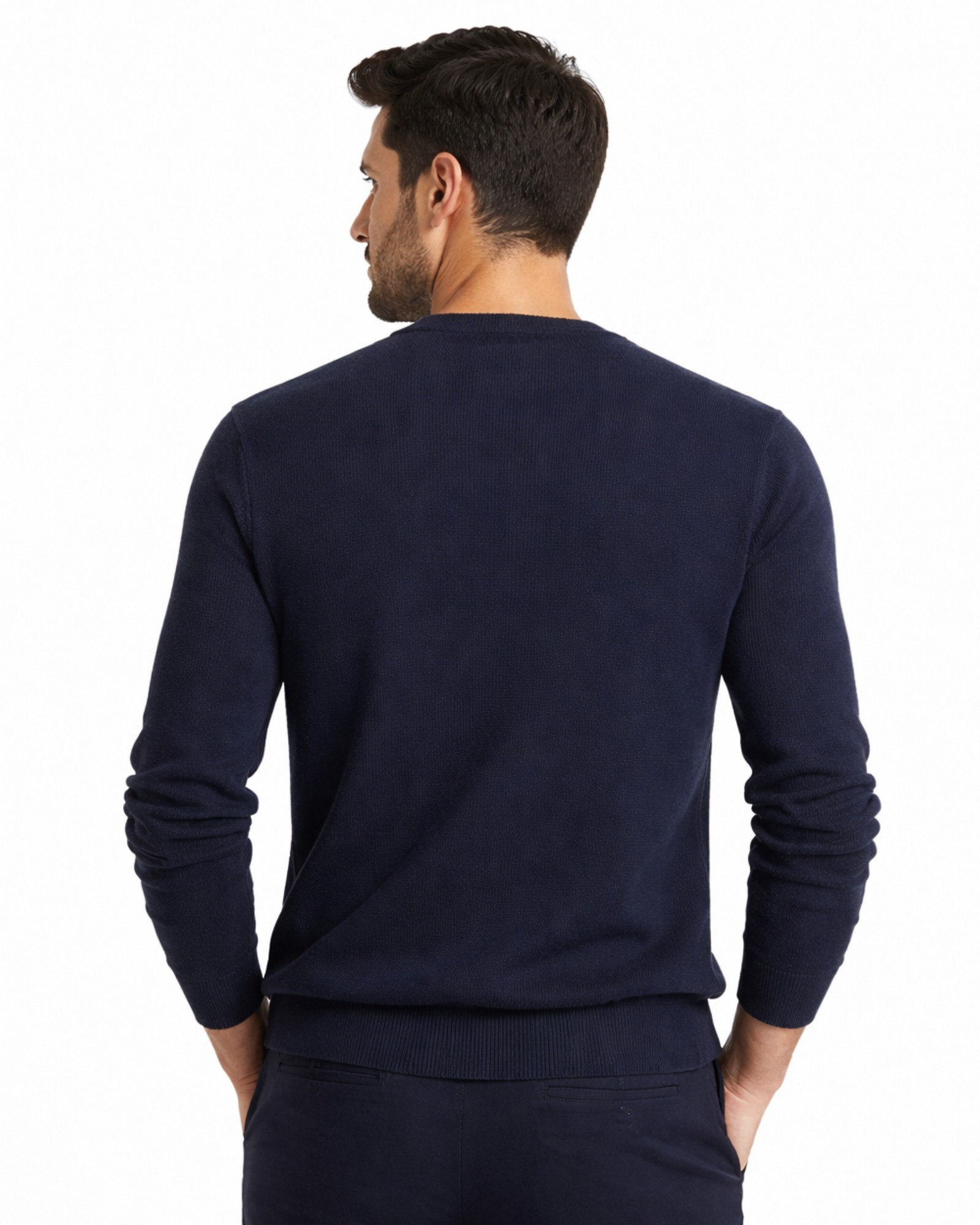 SSuéter cuello caja estructura liso tricotosa manga larga color azul marino algodón eco-friendly