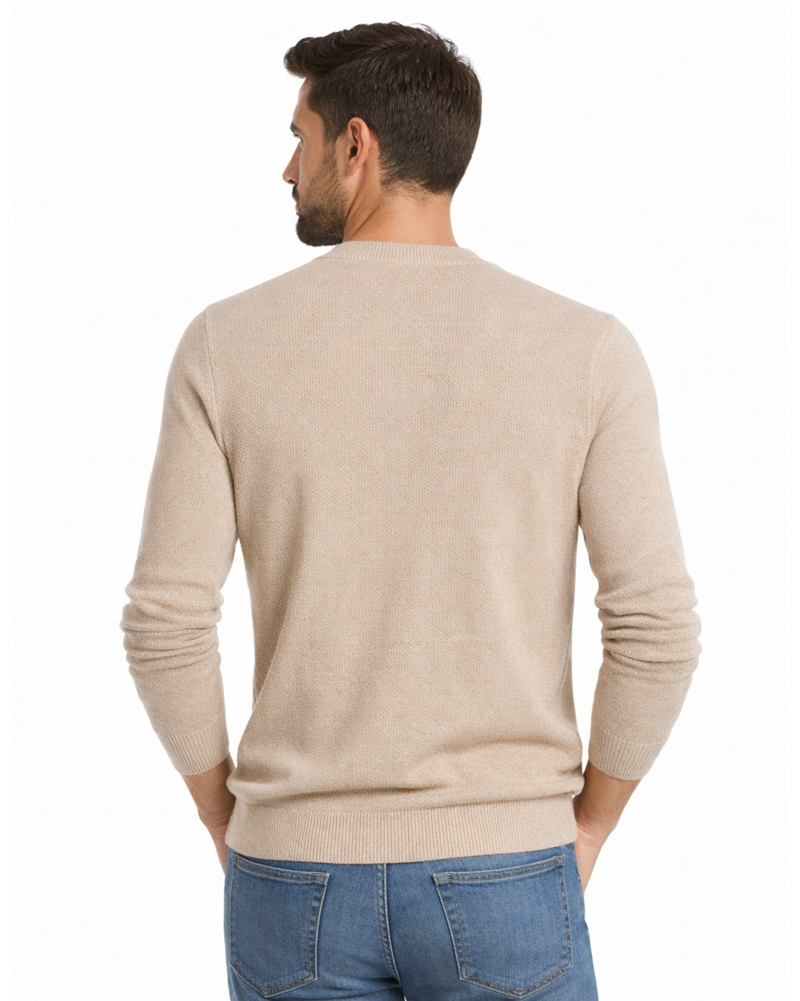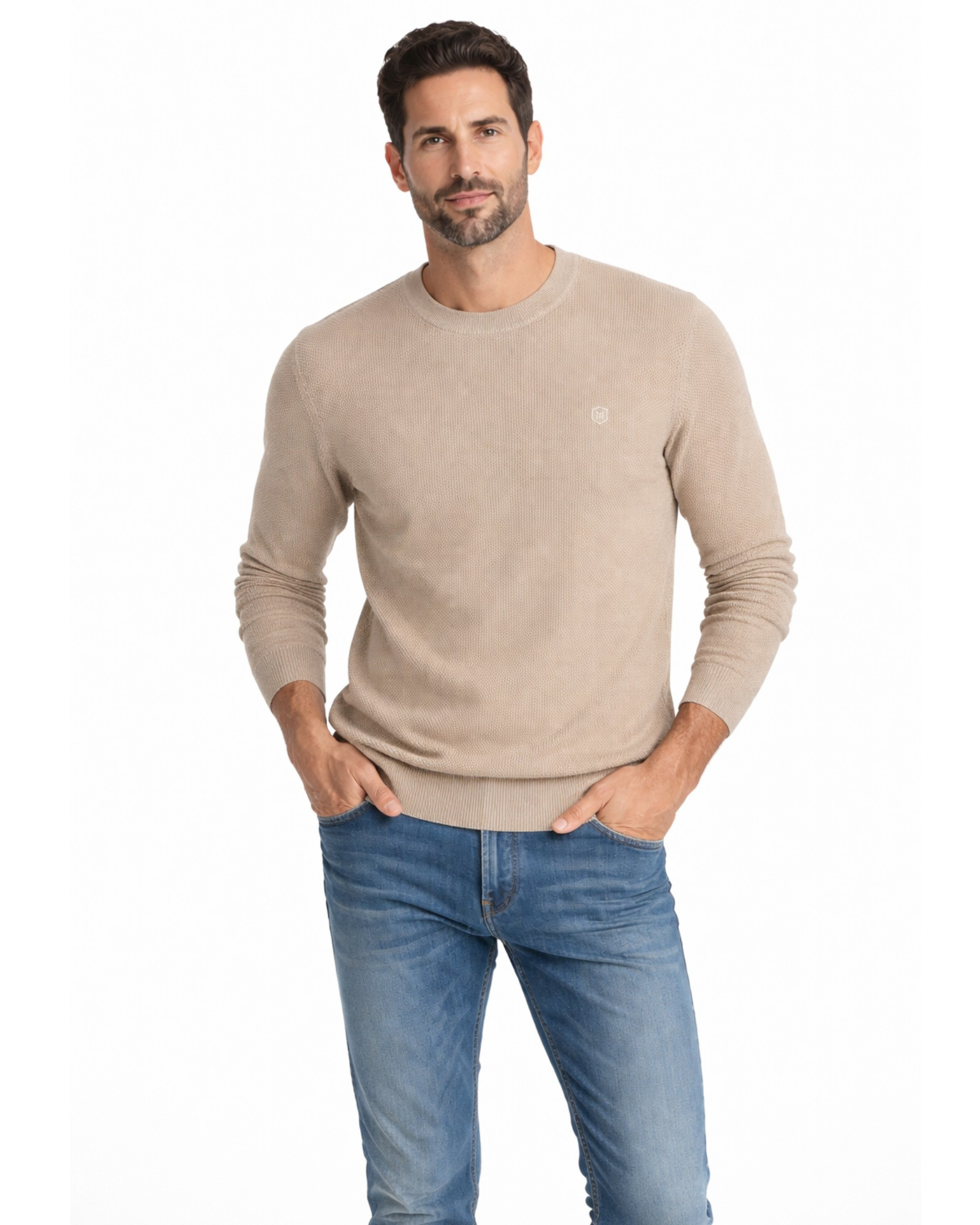 Serie 513 Suéter cuello caja estructura liso tricotosa manga larga color tostado