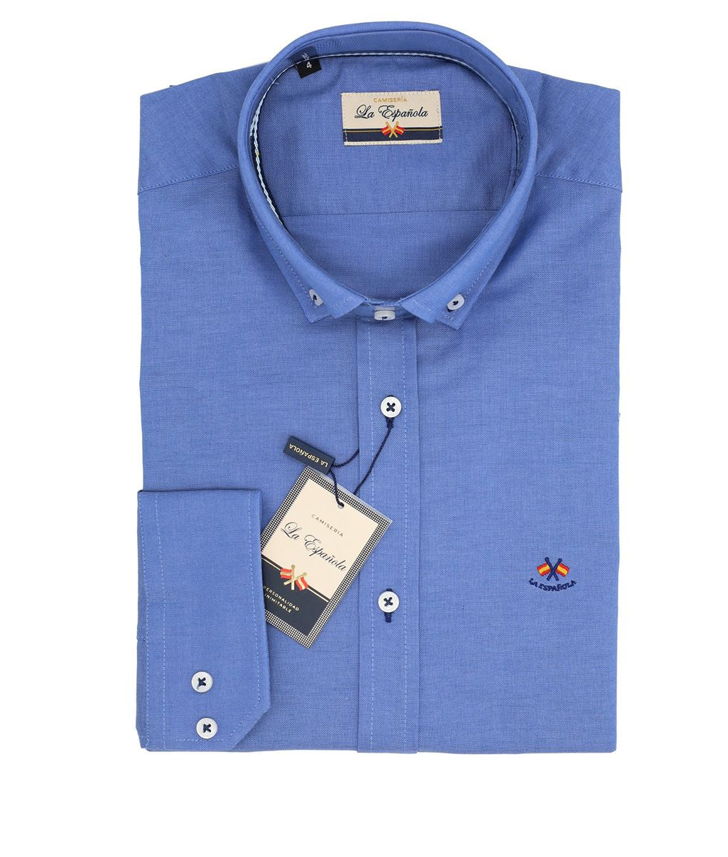 Serie 55505 Camisa oxford lisa cuello botón color azul