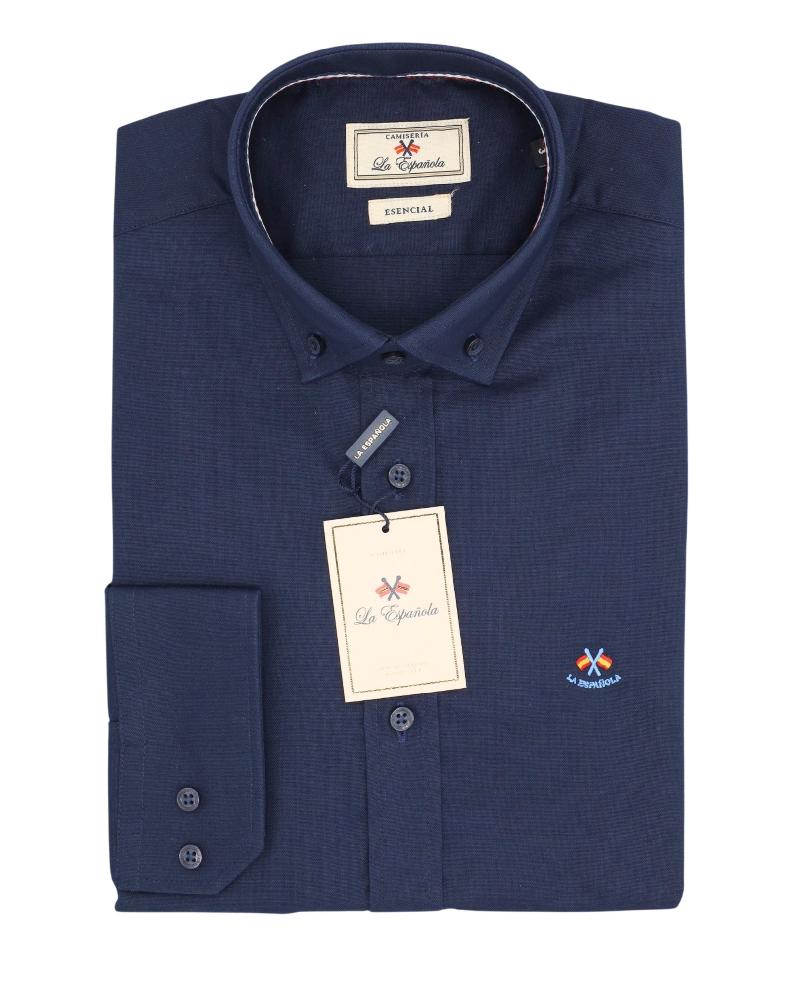 Serie 55505 Camisa oxford lisa cuello botón color azul marino