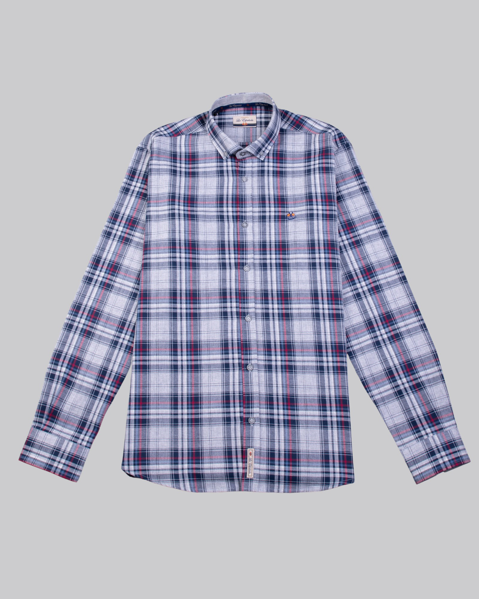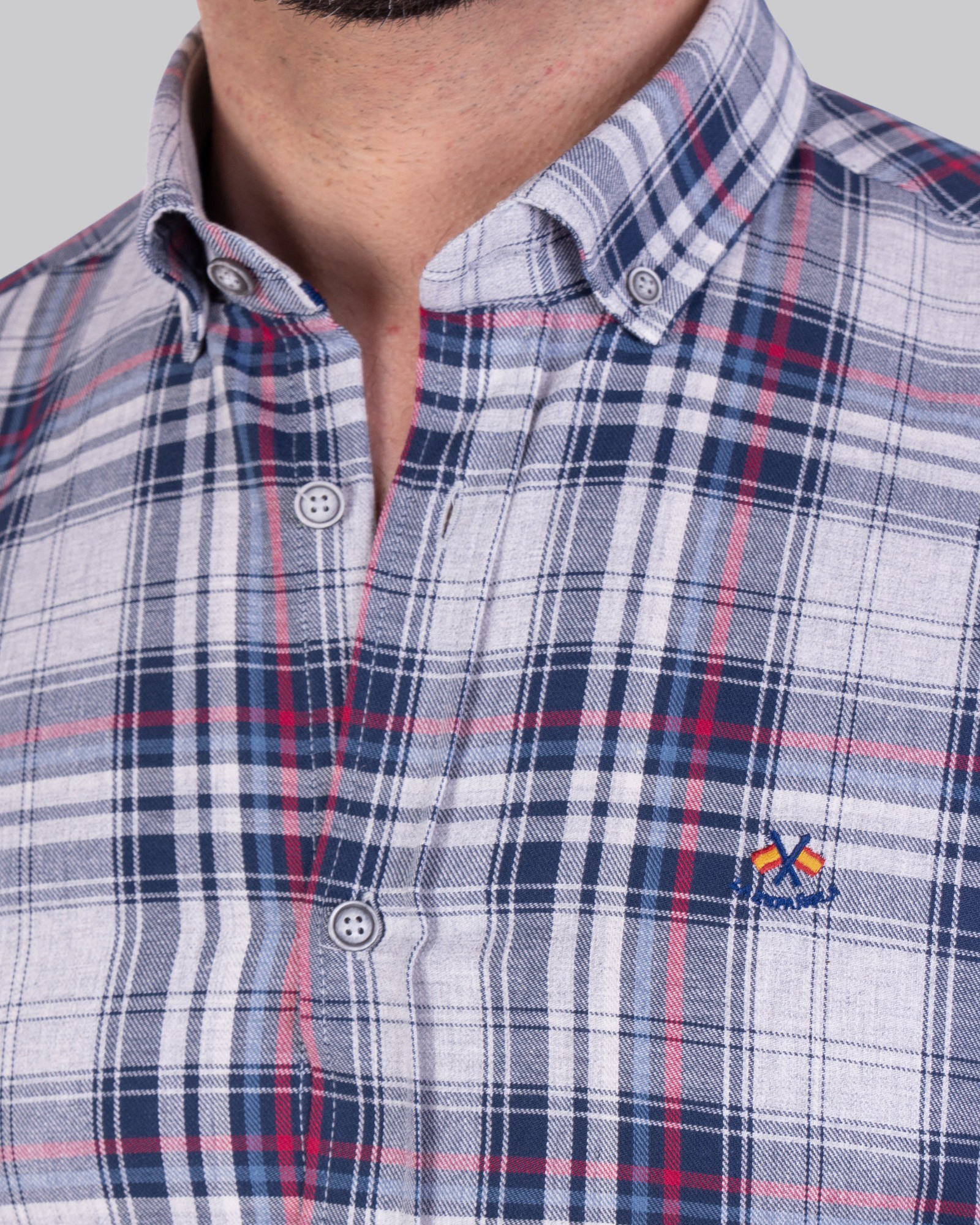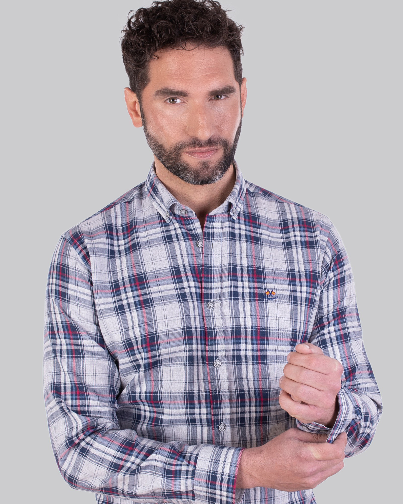 Serie 56044 Camisa algodón cuadros y cuello botón hombre