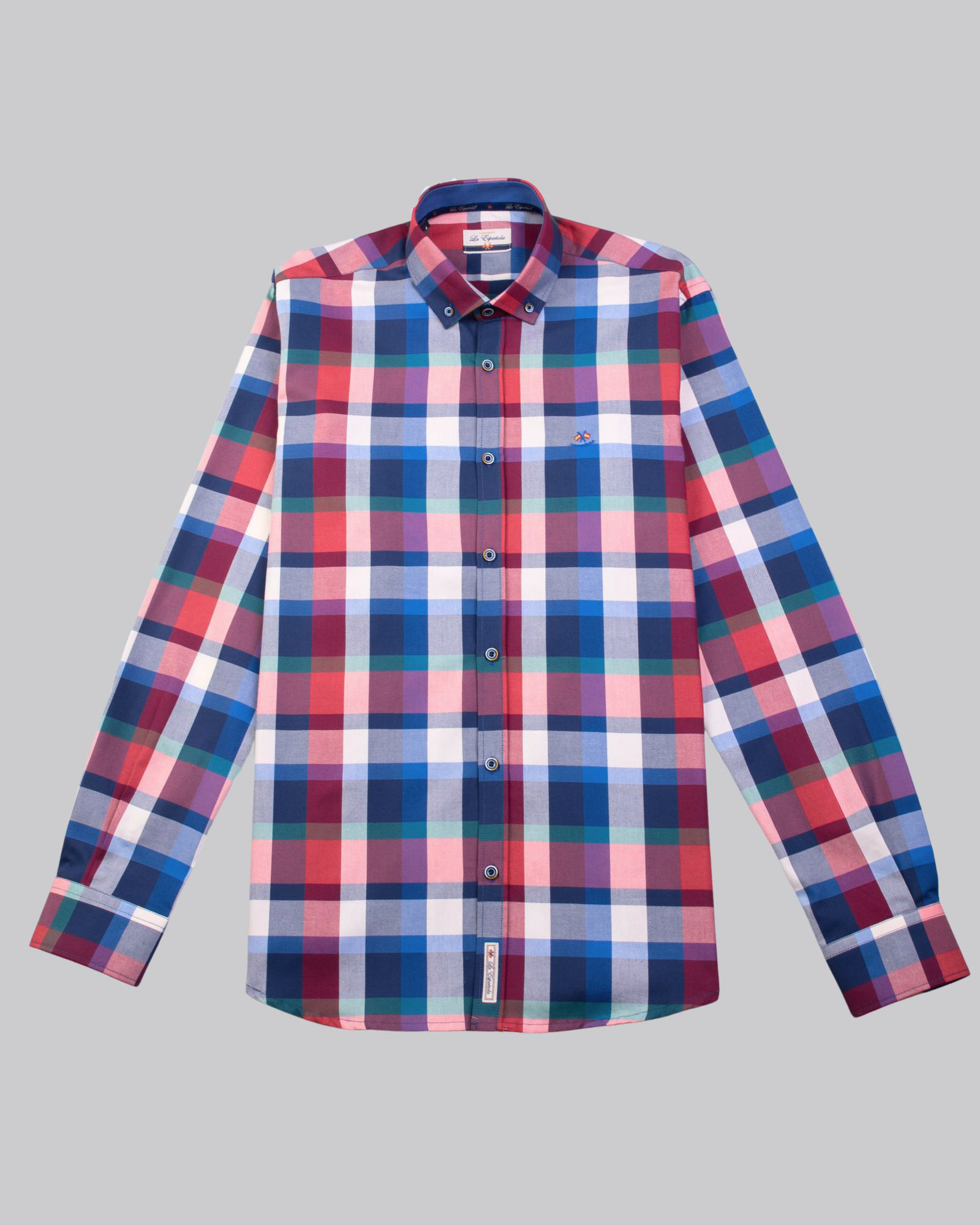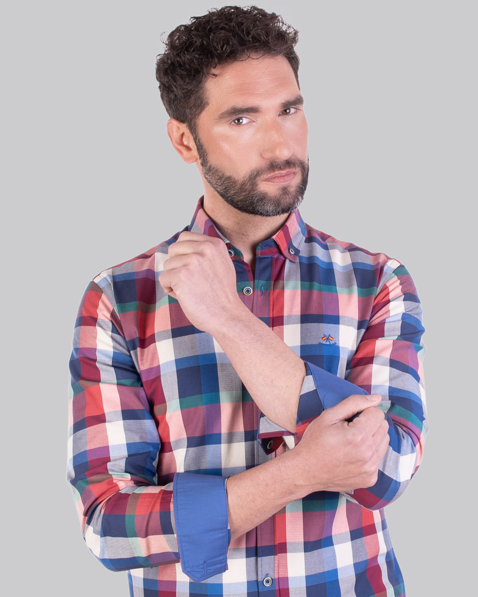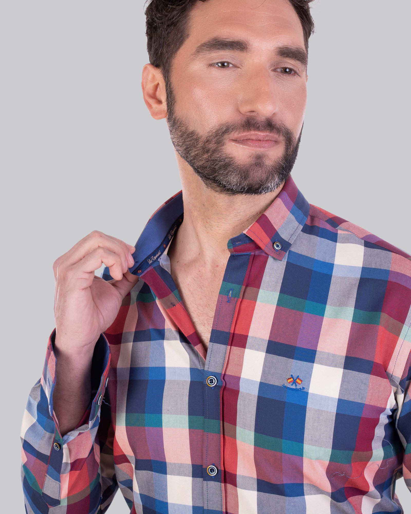 Serie 56126 Camisa algodón cuadros y cuello botón