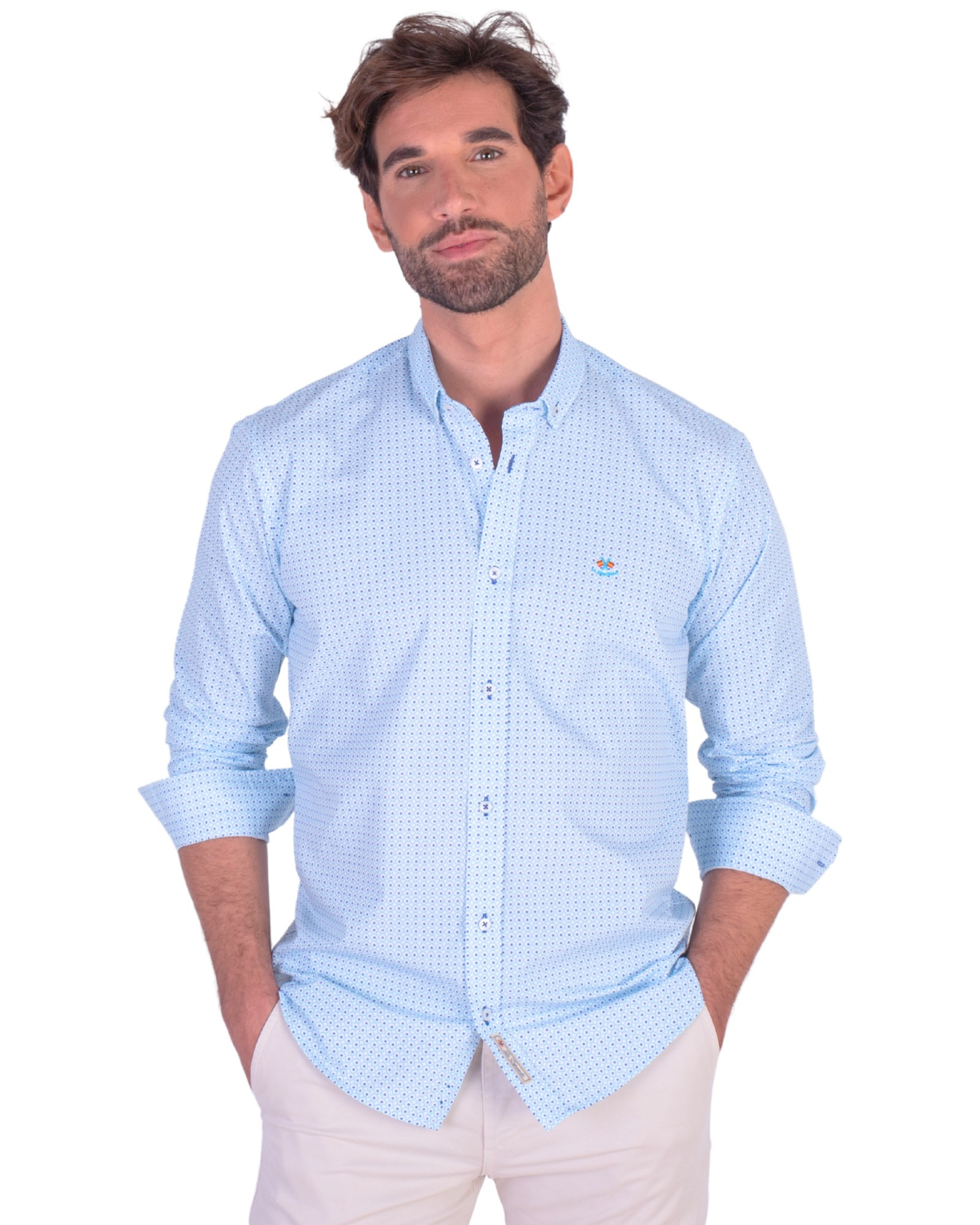 Camisa semientallada con estampado, cuello botón logo bordado. Confeccionada en algodón 100%.