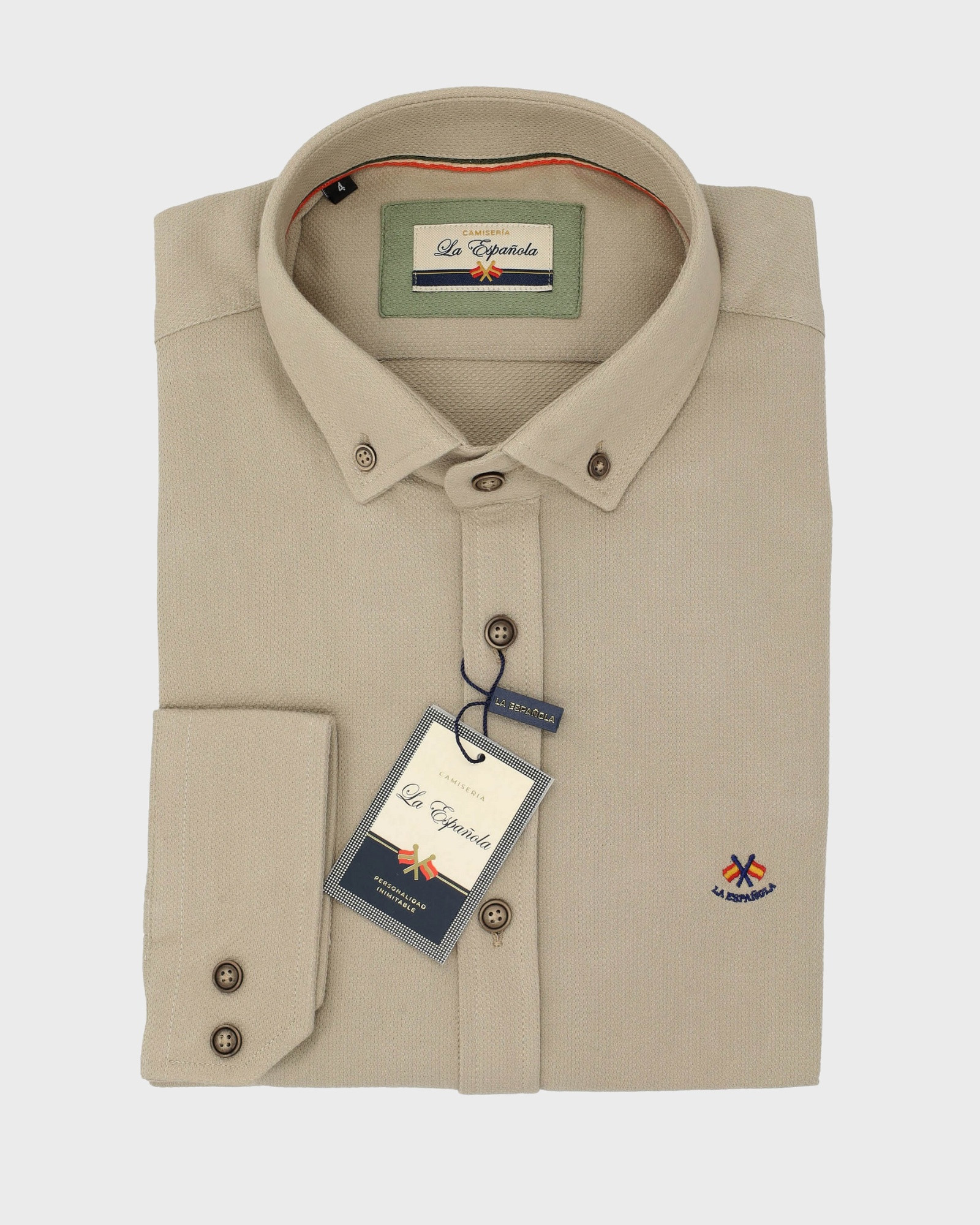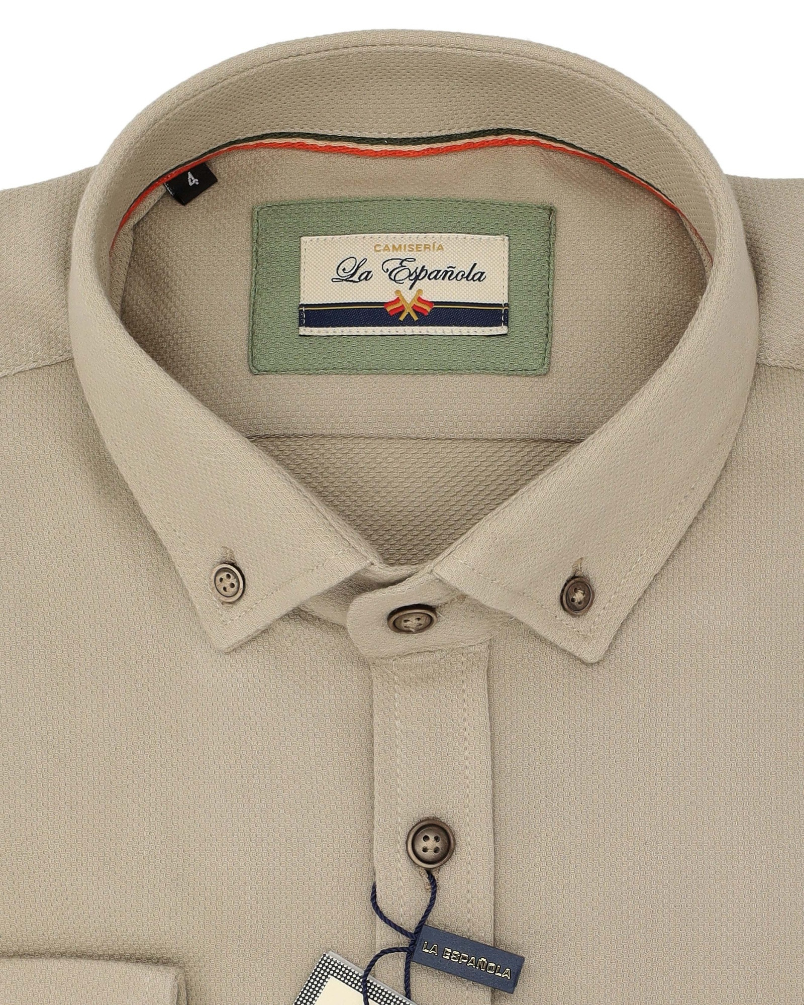 InicioCatálogoOutletCamisasSerie 56302 Camisa algodón falso liso cuello botón color beige