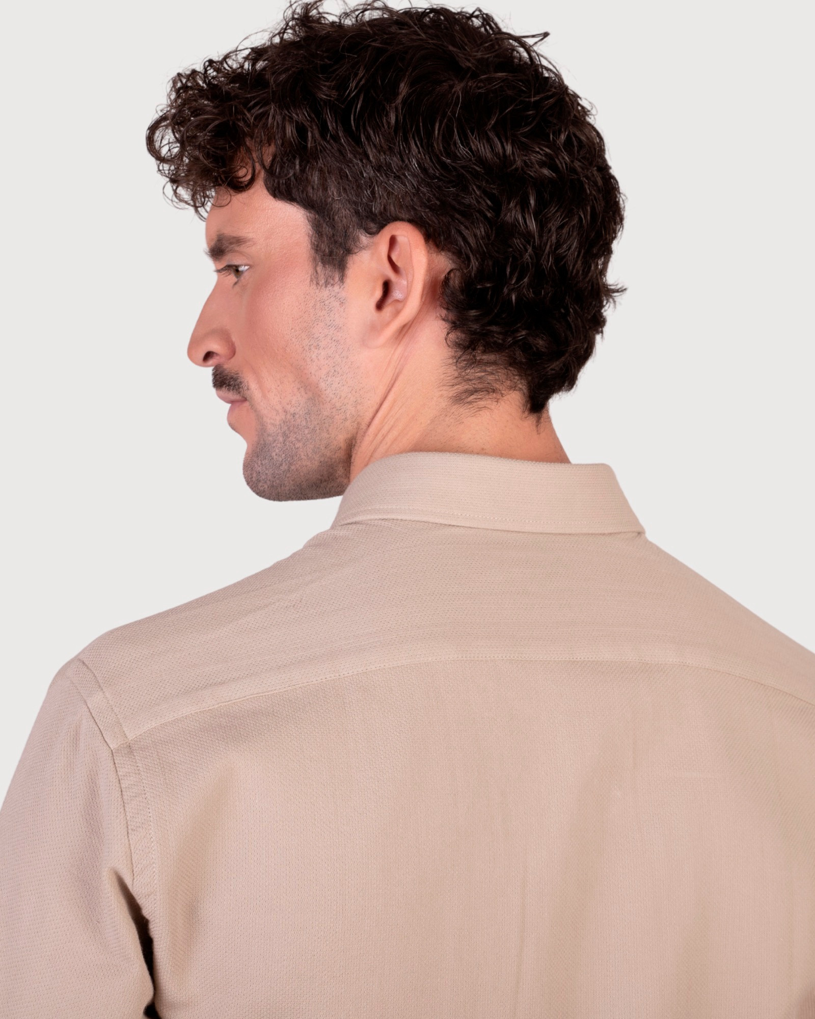 Serie 56302 Camisa algodón falso liso cuello botón color beige