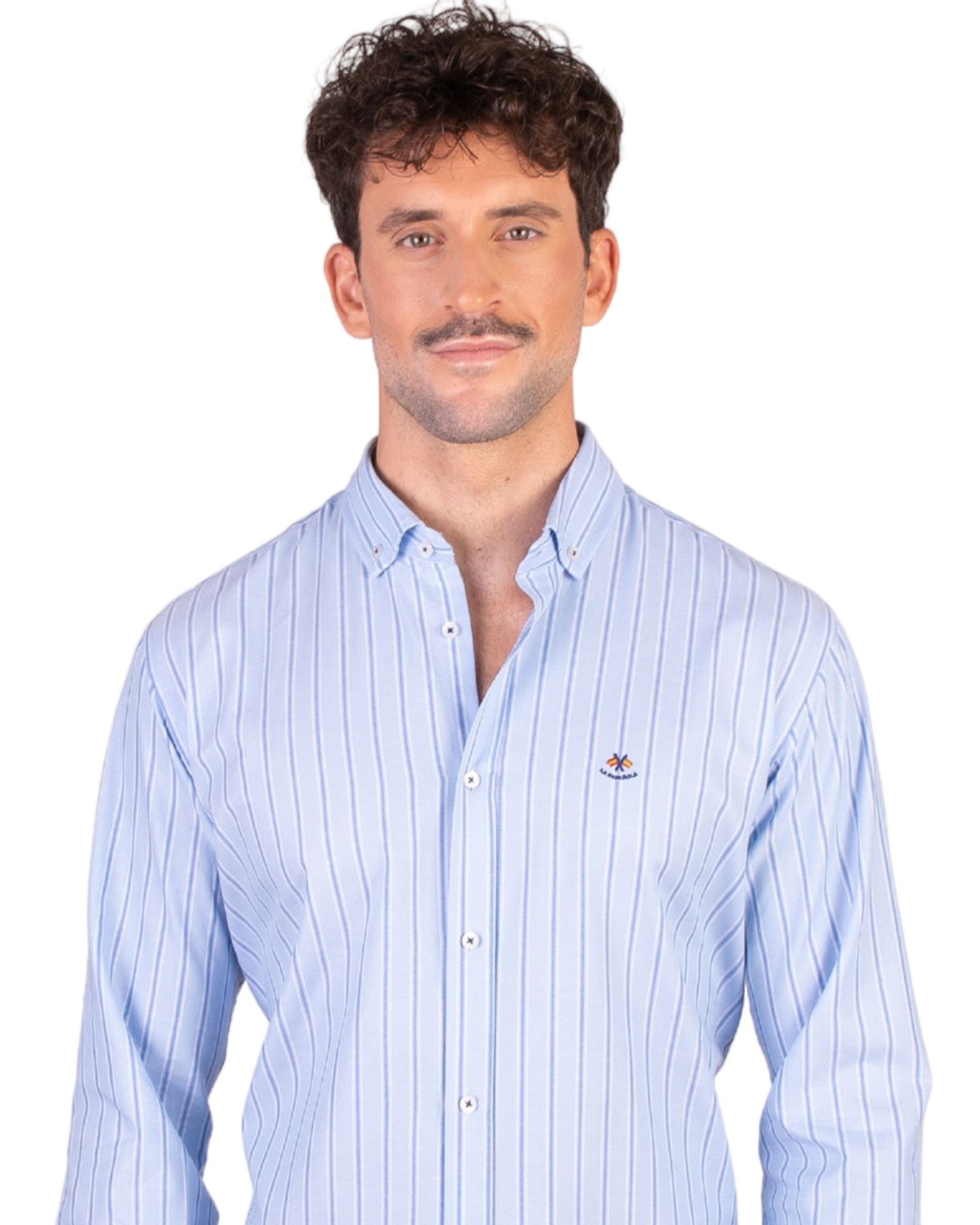 InicioCatálogoColecciónCamisasCamisas semientalladasSerie 56328 Camisa algodón oxford rayas cuello botón color azul