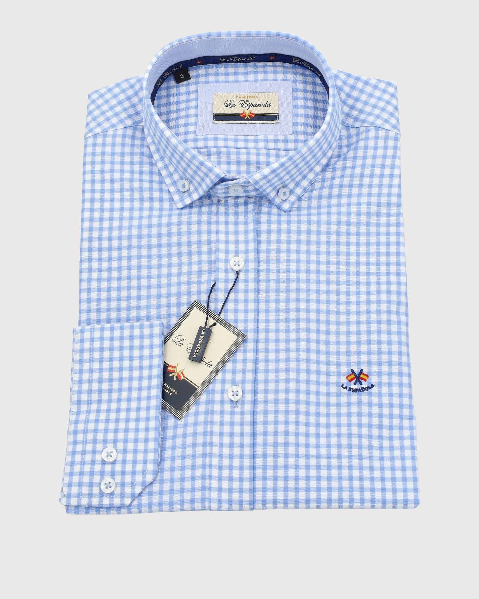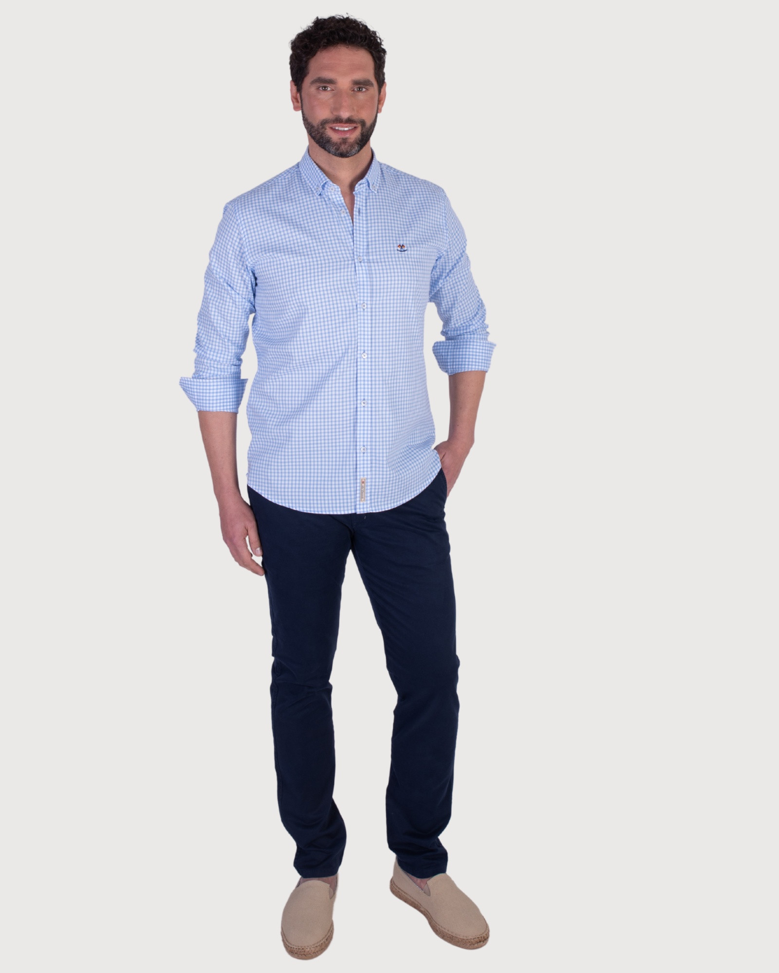 InicioCatálogoOutletCamisasSerie 56403 Camisa algodón cuadros vichy cuello botón color 1 azul