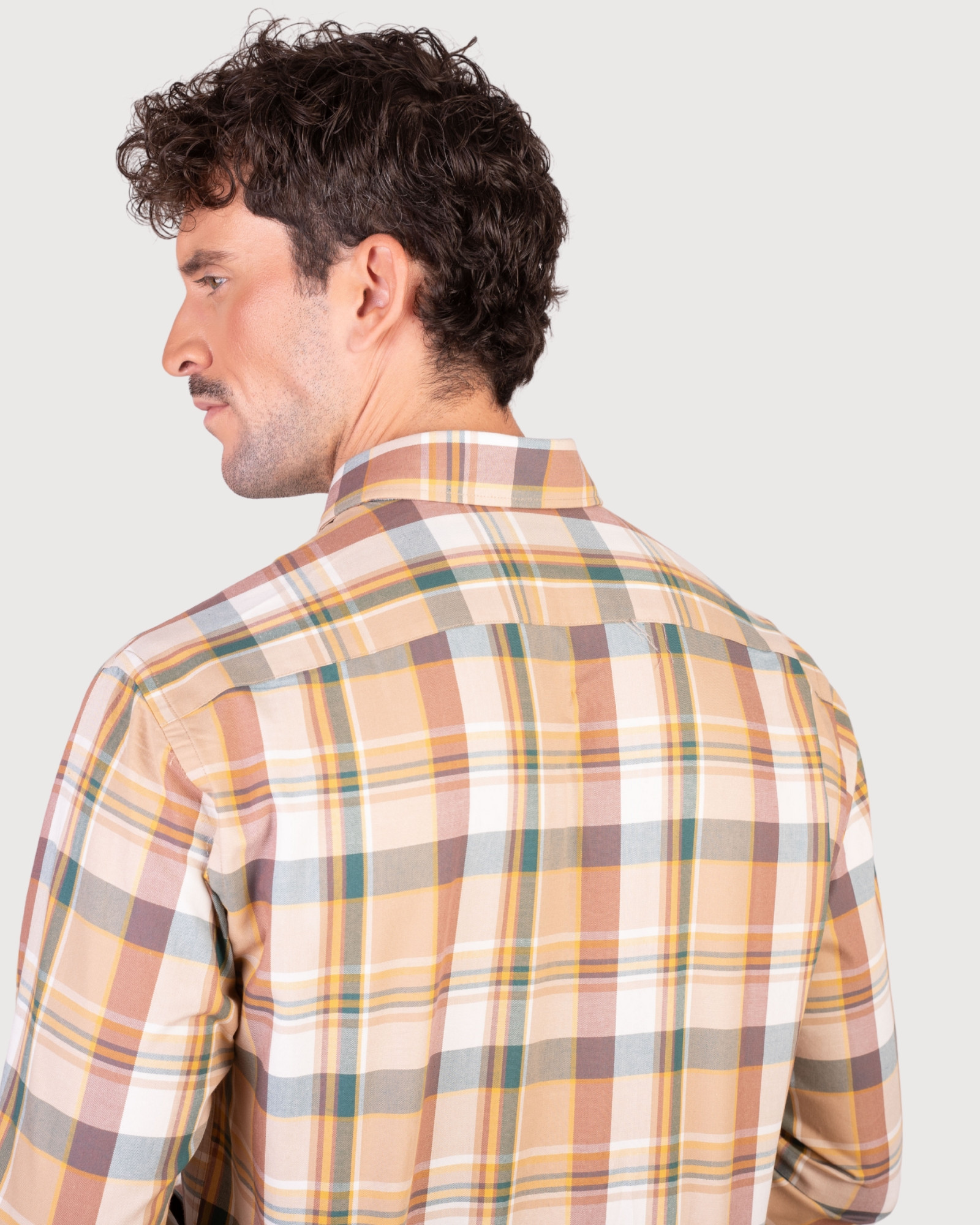 Camisa semientallada algodón cuadros. Confeccionada en 100% algodón