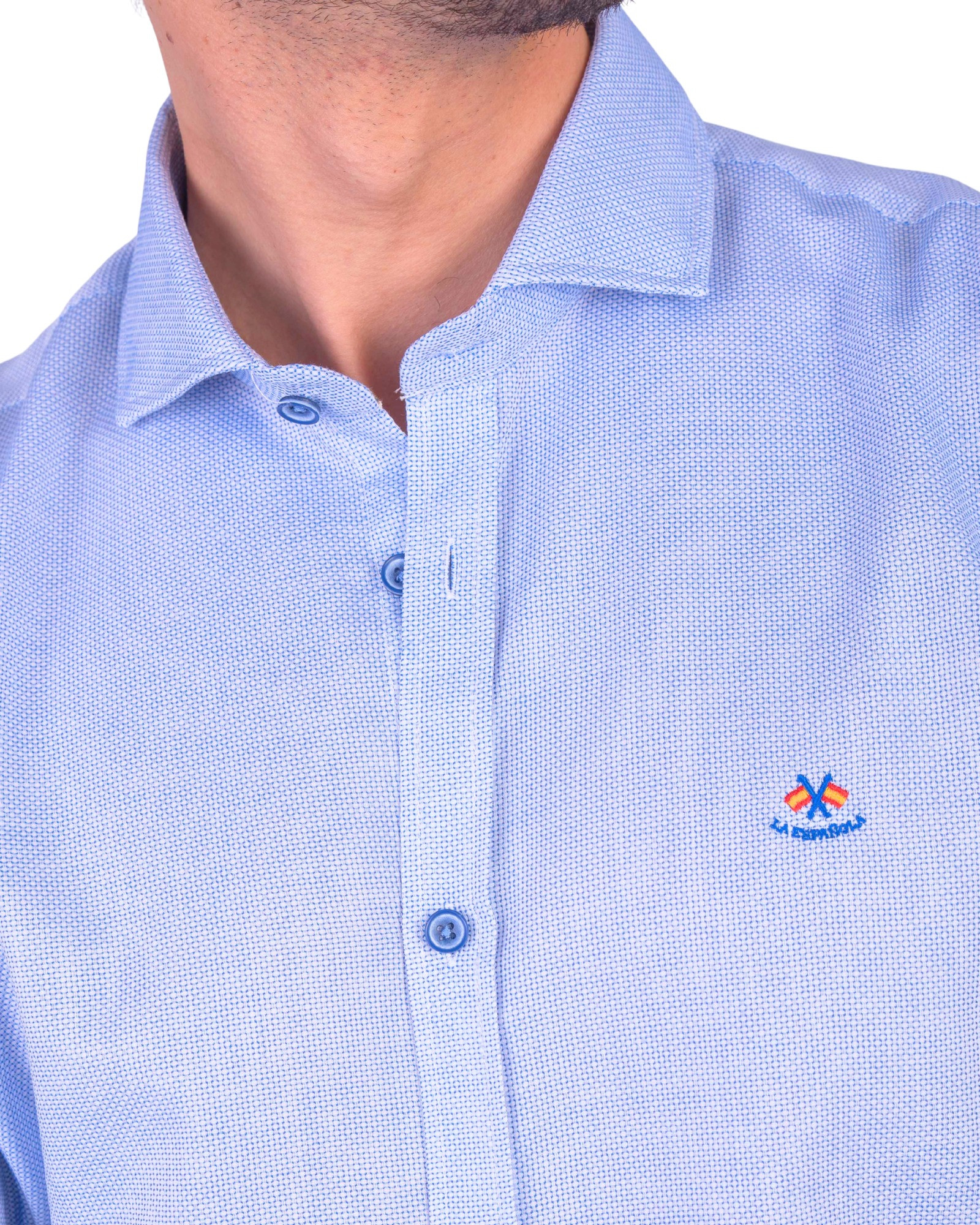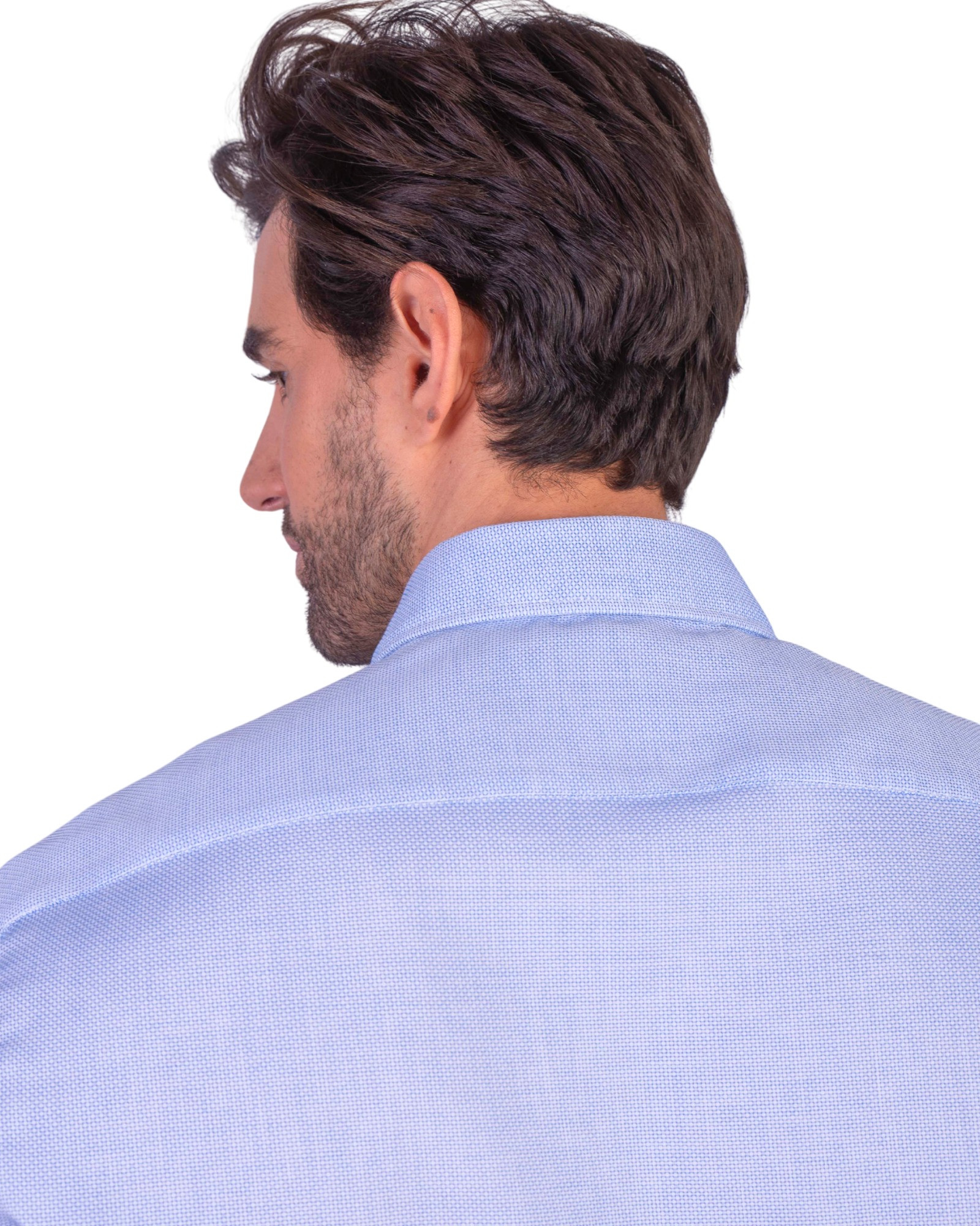 Serie 56427 Camisa falso liso algodón cuello italiano color azul
