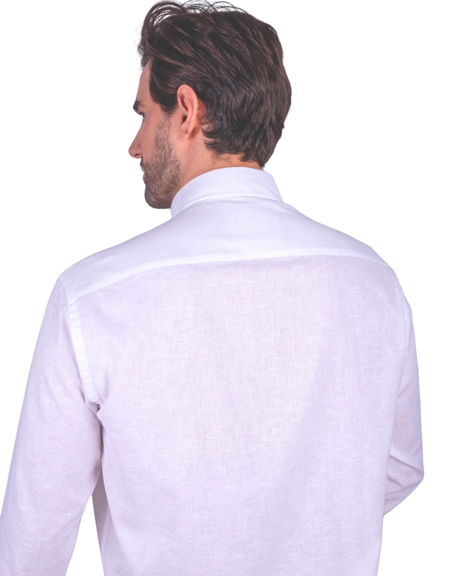 InicioCatálogoColecciónCamisasCamisas semientalladasSerie 56435 Camisa lino algodón cuello botón color blanco