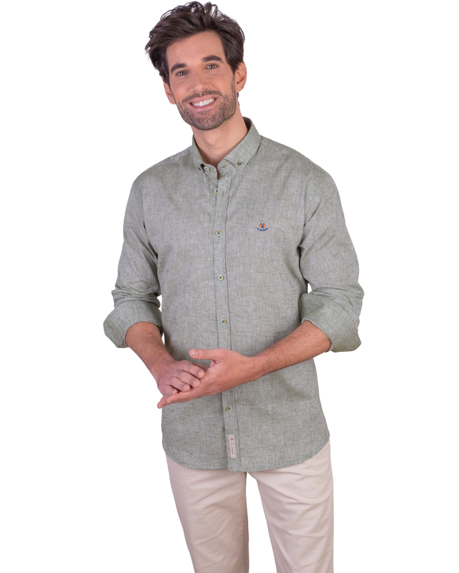 InicioCatálogoColecciónCamisasCamisas semientalladasSerie 56435 Camisa lino algodón cuello botón color kaqui