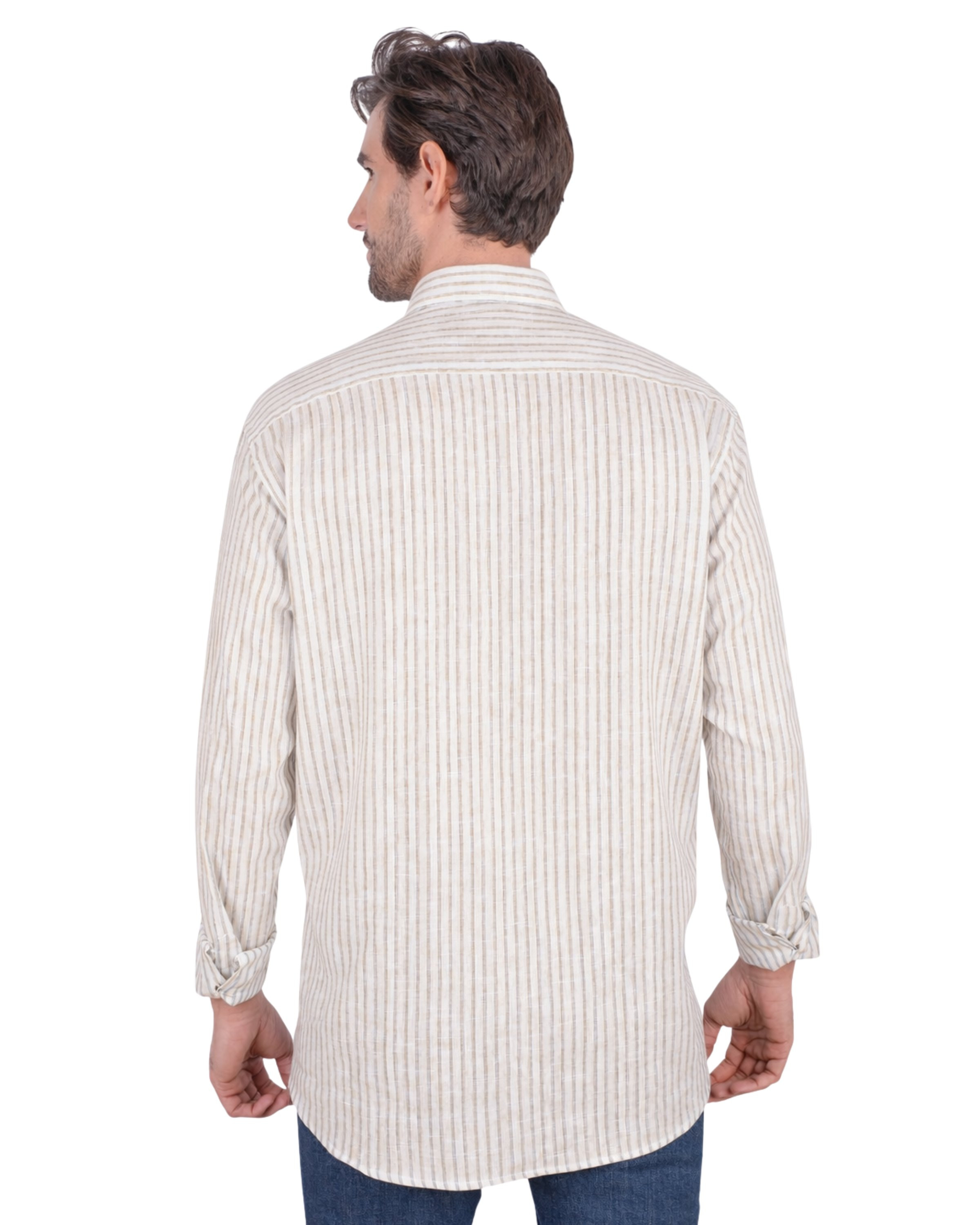 Serie 56463 Camisa rayas lino algodón cuello botón