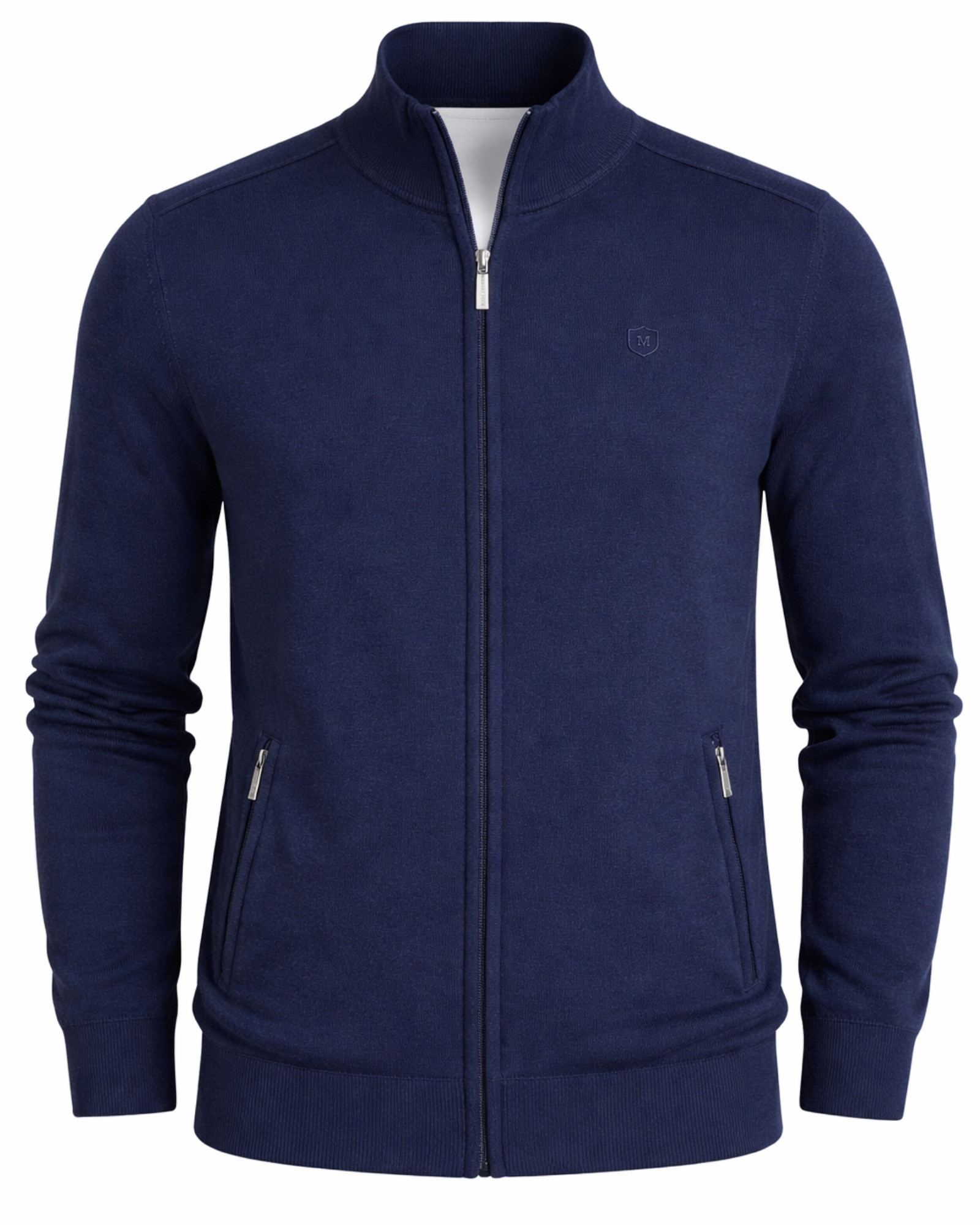 Serie 601 Chaqueta cremallera con bolsillos tricotosa manga larga color azul marino