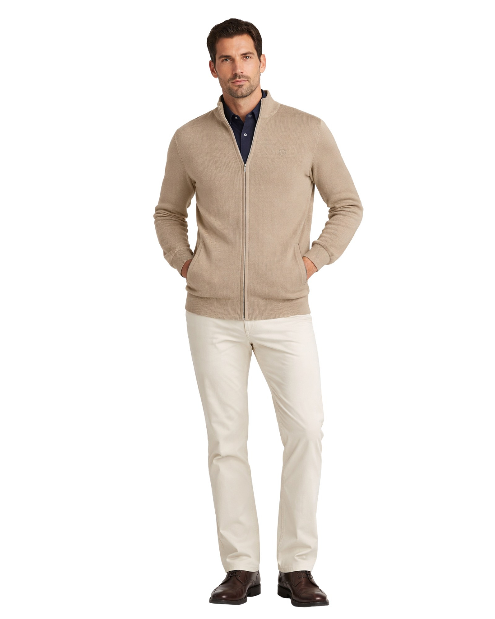 Serie 601 Chaqueta cremallera con bolsillos tricotosa manga larga color tostado