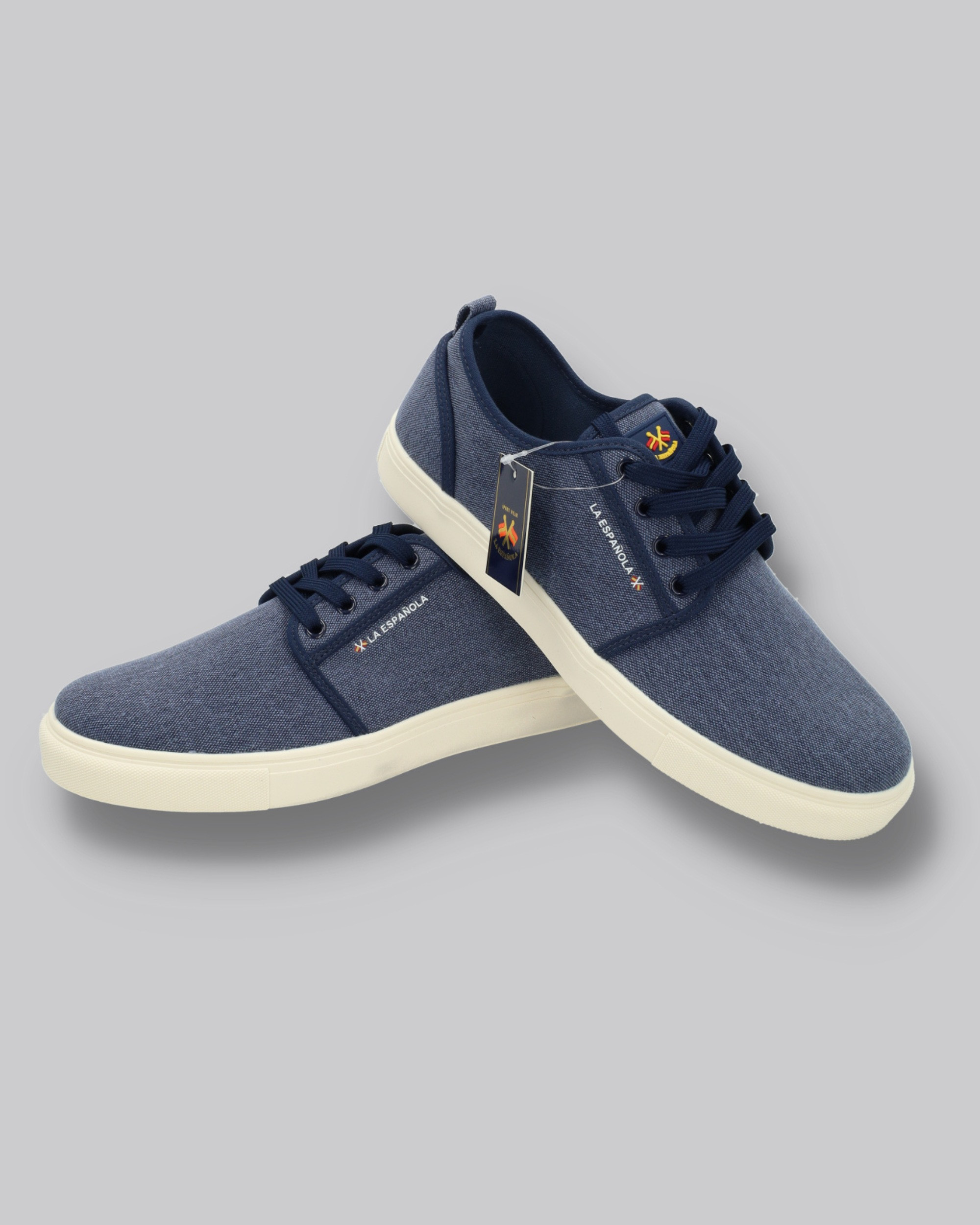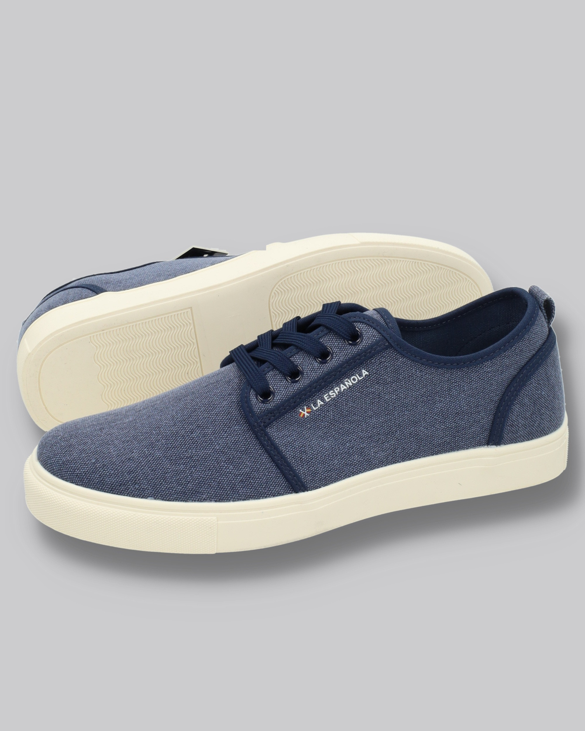 Zapato lona azul marino con cordones y suela goma para hombre.