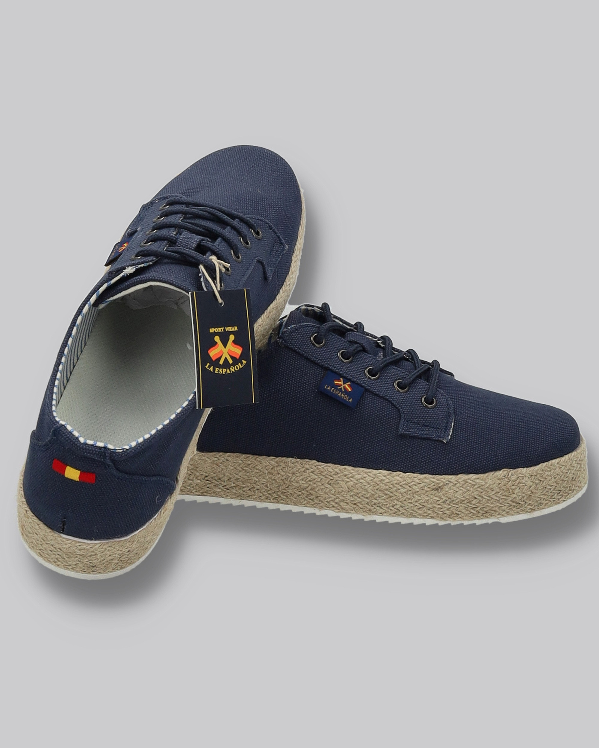 Zapato lona color azul marino con cordones y suela yute para hombre.